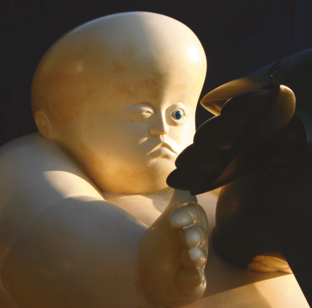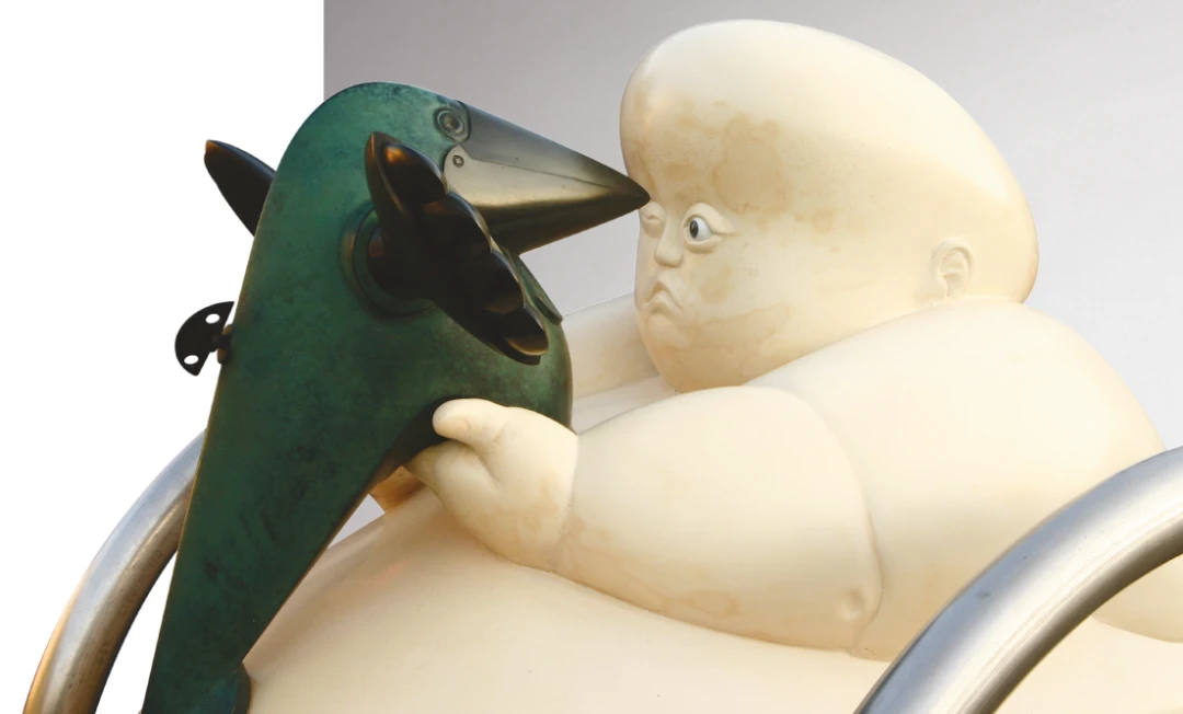 De aanleiding om dit beeld te maken was dat Willem een bronzen beeld zag voor een kerk in Harmelen – Utrecht. Dat was een typisch Anne Frank beeld van een meisje met een vogeltje op het handje. De katholieke jaren 60 truttigheid droop ervan af. Grappige was: Willem wist niet dat het beeld was gemaakt door zijn grote voorbeeld: Pieter d’Hont. Toch dacht hij: 'Ik ga een variant maken en wel zo erg dat het choqueert'. Een obese meisje met zielige beentjes. Het was zo uit vorm dat hij in een zelfbedachte moderne rolstoel zette. Een gemene vogel staat op haar handjes. Met de snavel van de vogel bedreigend dicht bij het nog enige dat over is. Het oog van het meisje komt van het blindeninstituut Bartimeus. Daar was een blind meisje die kunstogen kreeg. Die ogen zaten niet lekker en het meisje begon op de oogjes te sabbelen en te bijten. Soms slikte ze de oogjes zelfs door. Er zaten op een gegeven moment zoveel bijtsporen op dat het oog niet meer bruikbaar was. Willem zag het in een laatje liggen bij Bartimeus en vroeg of hij het mocht hebben. Hij had het oog nodig voor het beeld. Ander bizar detail: Een half jaar later ziet hij de invaliden marathon van Rotterdam en wat ziet hij? De para-atleten hebben allemaal dezelfde vorm rolstoel als de kar van het meisje!