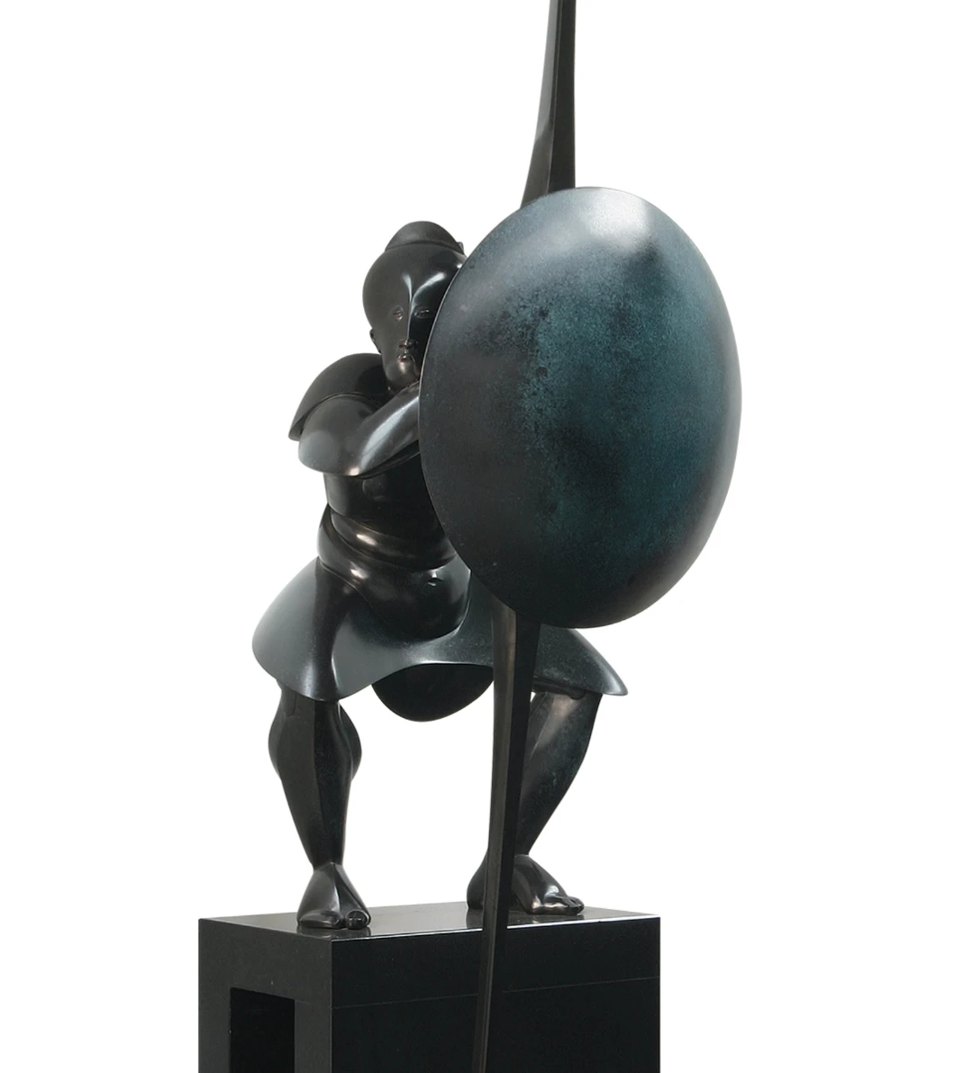 Willem Lenssinck 接受了一家建築事務所的委託,為他們大樓的壁龕創作一個雕塑。目的是將這個雕塑像寄居蟹一樣放置在壁龕中。因此,長矛和盾牌首先引人注目,形成一個圓圈和一條線,這是每位建築師的基礎。在那個年代(80 年代),荷蘭發生了許多佔屋者暴動,因此人們很快將其與鎮暴警察或特務聯想在一起。這個雕塑遭到拒絕,並賣給了一位覺得它很美的人,碰巧是 Willem 最好的朋友。